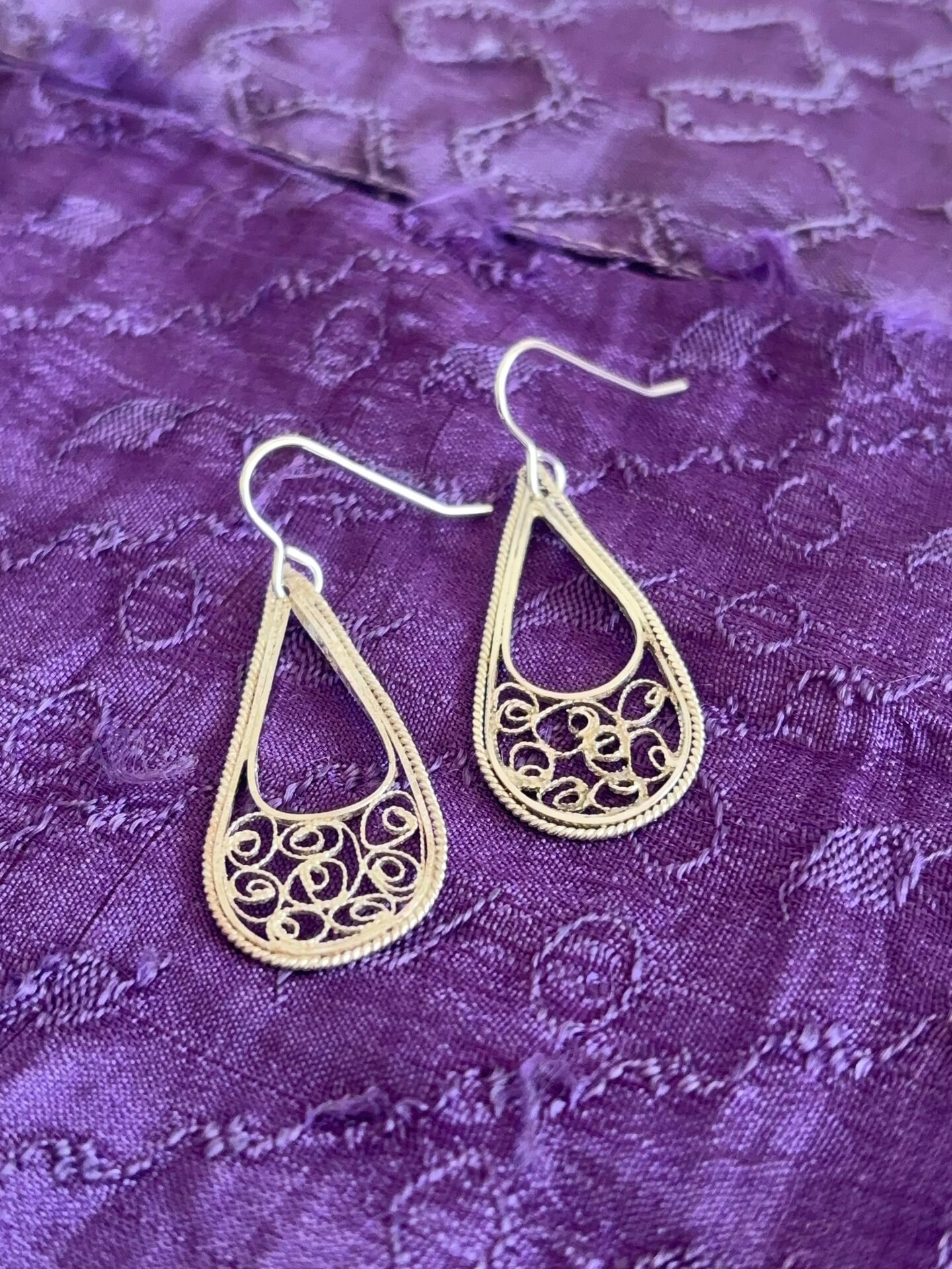 Boucles d’oreilles pendantes en argent massif – Collection filigrane